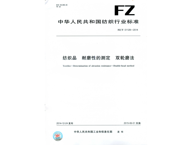 參與起草《紡織品 耐磨性的測定 雙輪磨法》(FZ/T 01128-2014),該標準由中華人民共和國工業(yè)和信息化部于 2014-12-24 發(fā)布